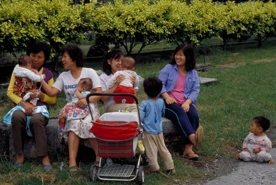 午後街邊四個太太抱著他們的孩子,聊天乘涼。(張良綱)