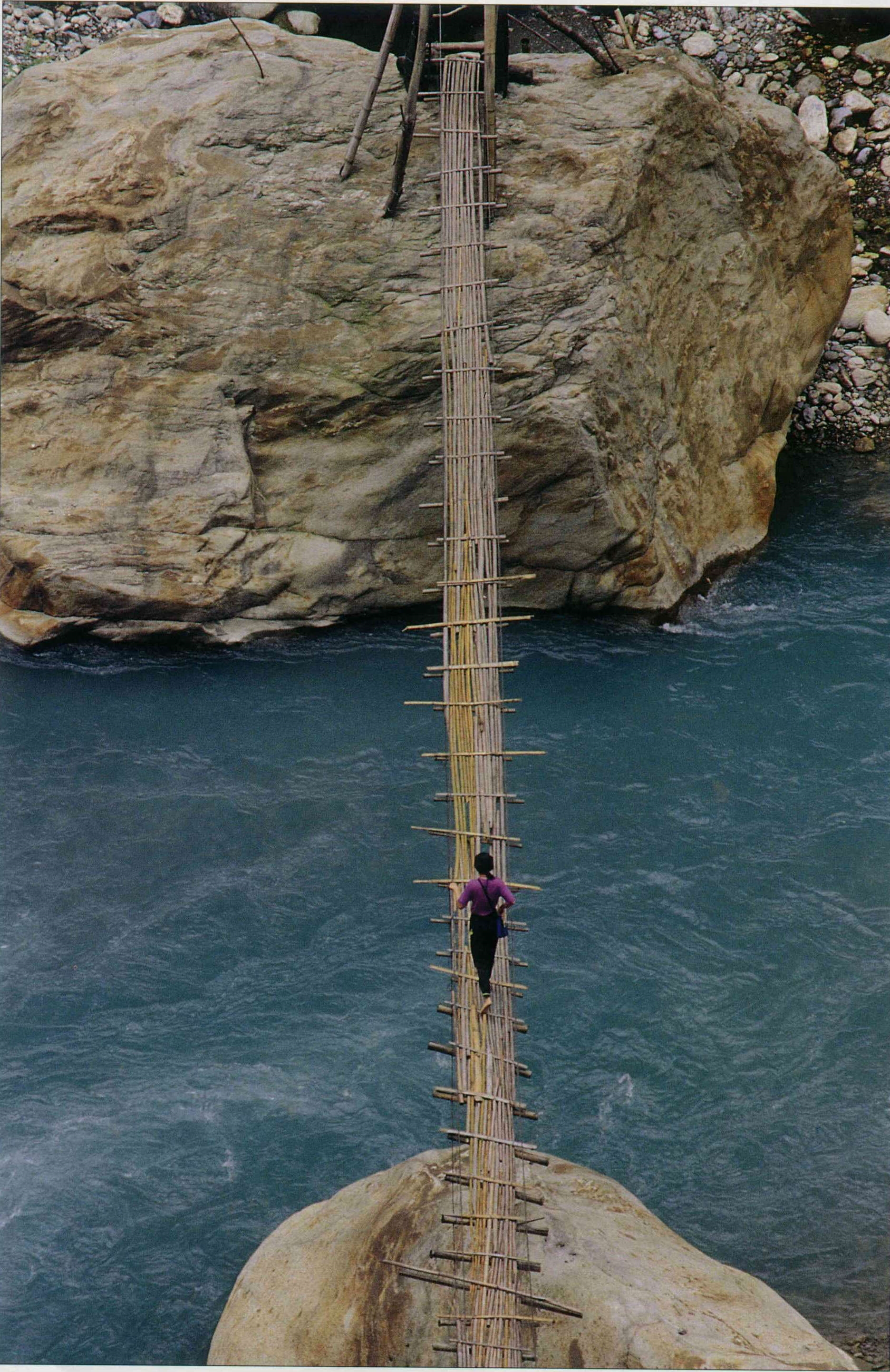 現在行走錐鹿古道的起點,就是這座跨在立霧溪河床的竹製吊橋。