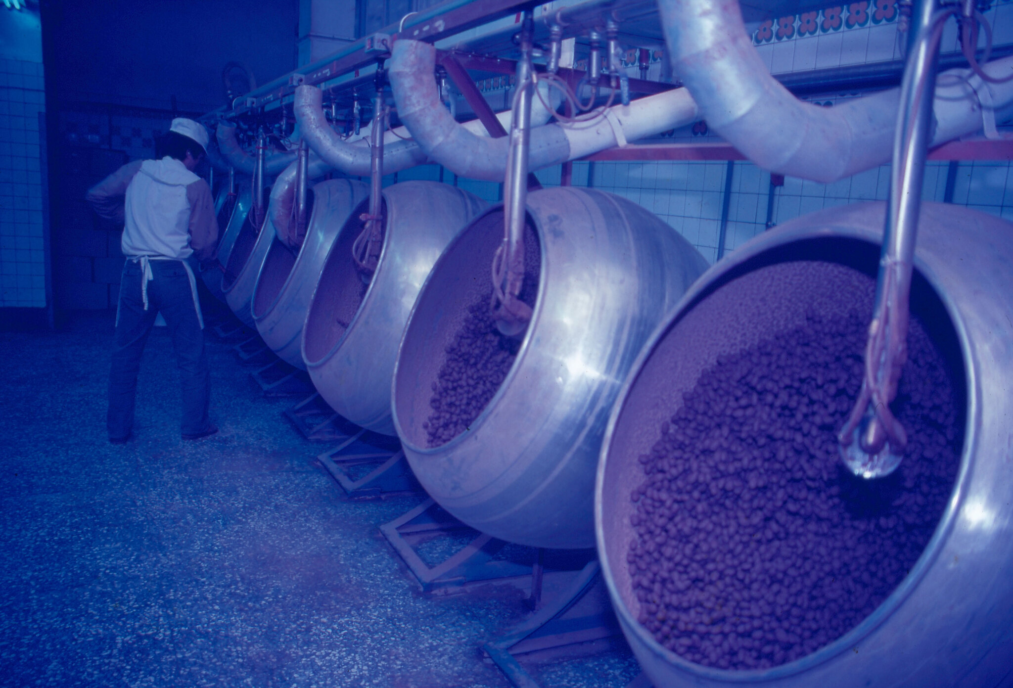 圖2.為在滾鍋內製造圓球巧克力。(鄭元慶)