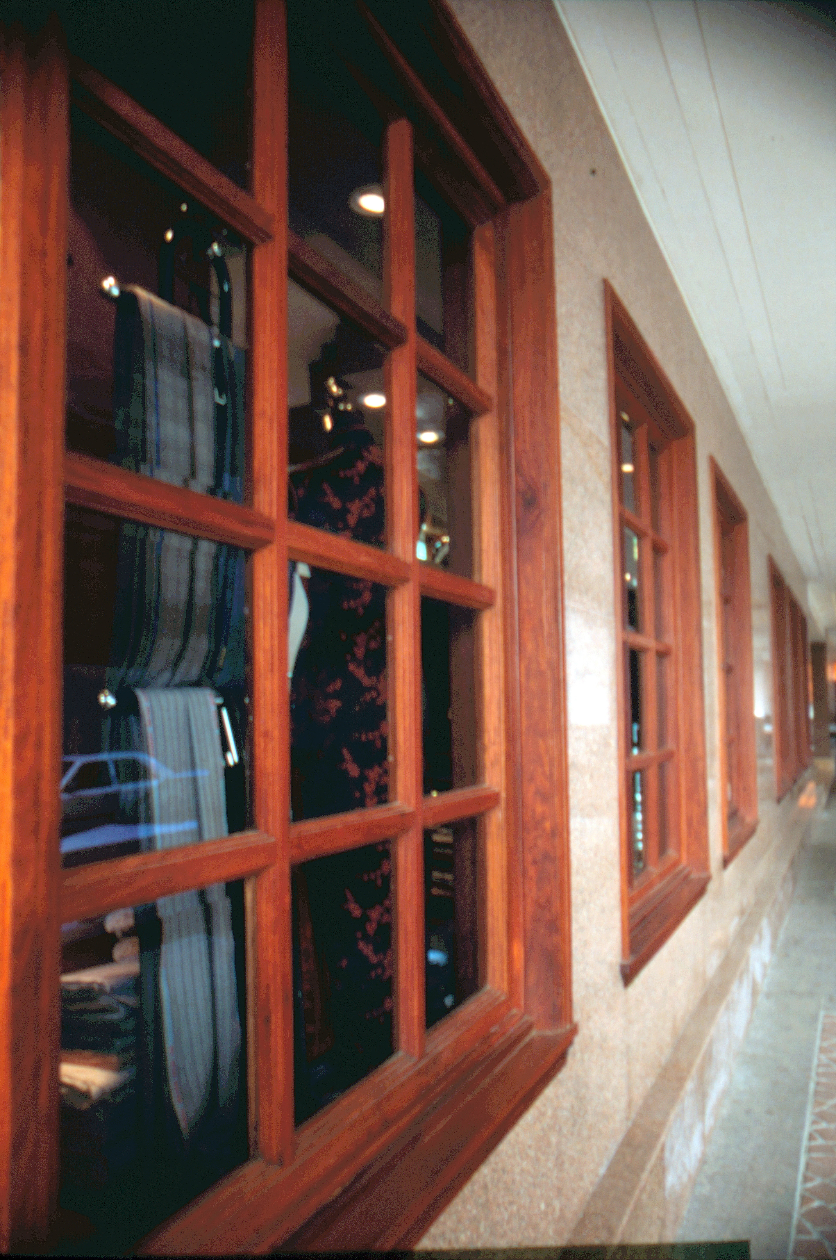 希爾頓飯店公關經理梁吳蓓琳也指出,飯店不能與外界太過分隔,否則會造成與消費者間的距離。但因面臨公車、人潮輻輳的大街,若設計成落地窗,飯店的顧客會沒有安全感,所以,木櫺格子窗正好可以去其害而取其利。