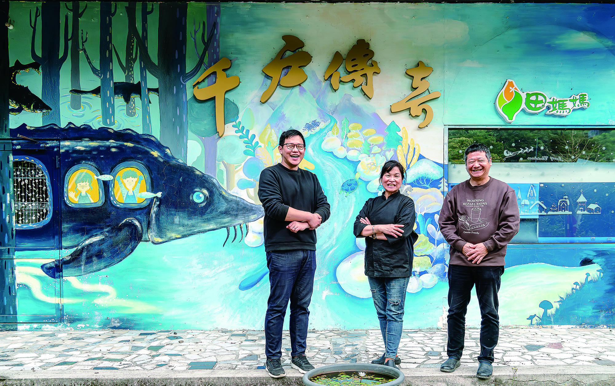 現已接棒的第二代林晉存(左),承接林典(右)與葉福花(中)的養殖技術。
