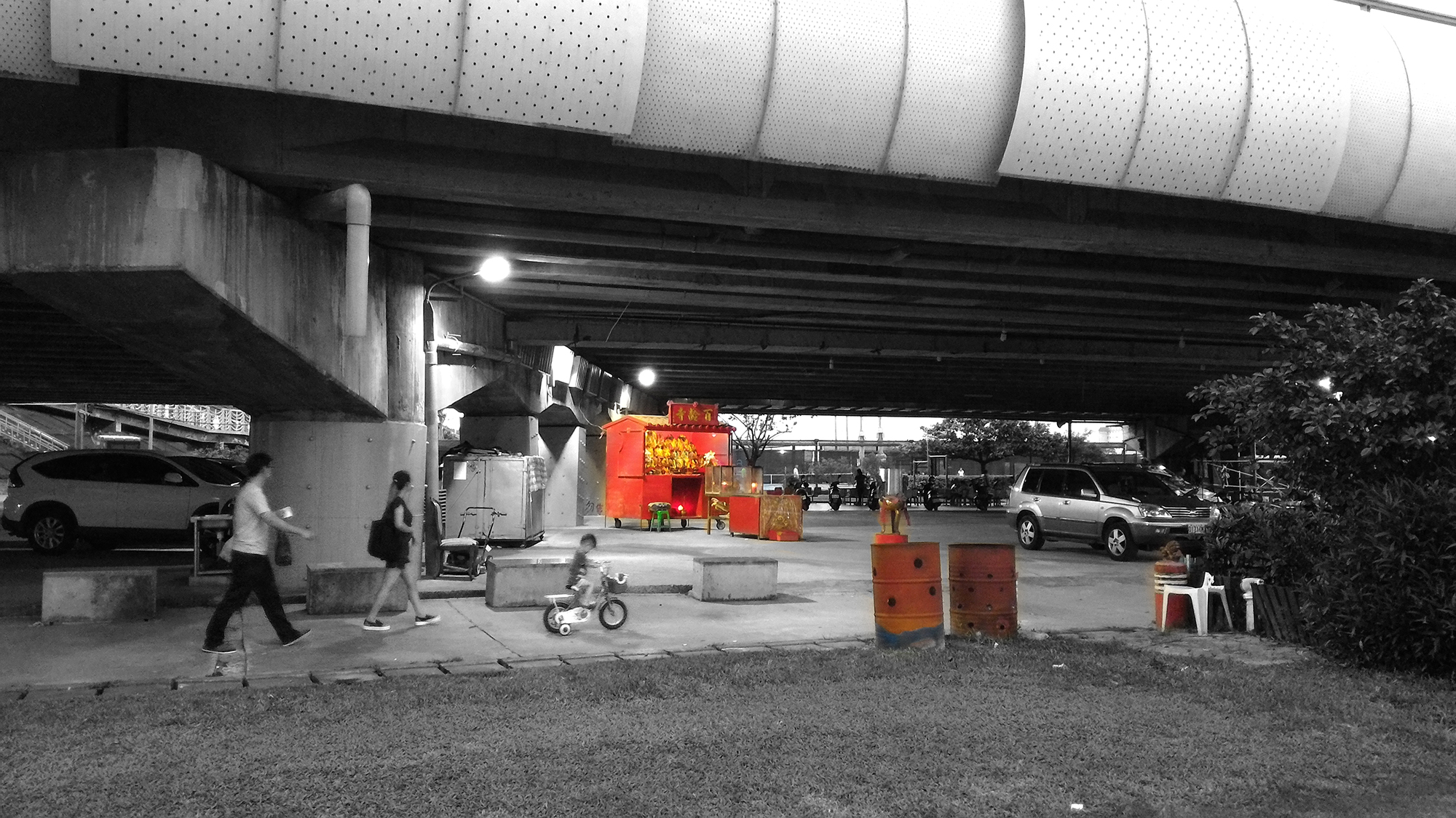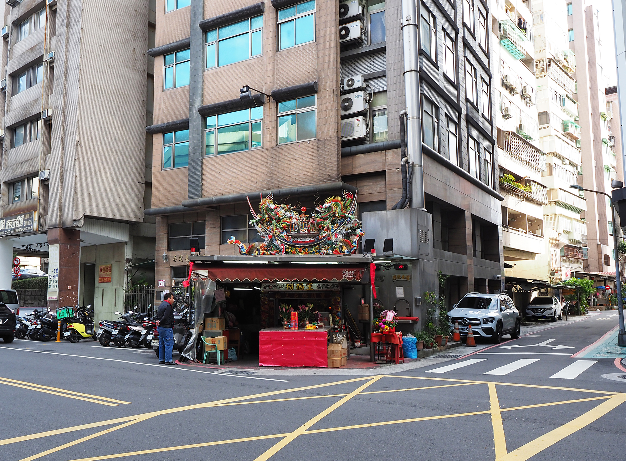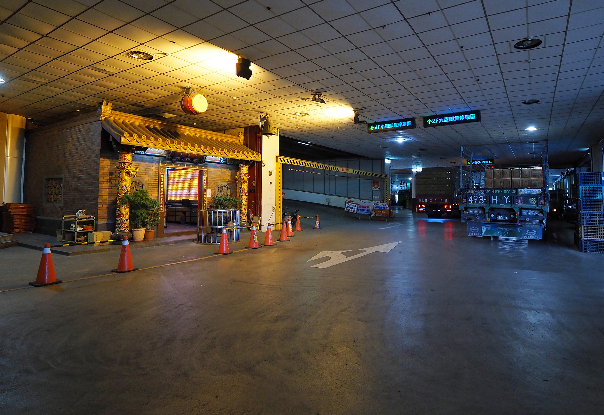 還有位在台北濱江市場停車場車道迴圈位置的土地公,「市場裡一定會有一間給神明的廟,讓市場工作者祈拜,通常會位在市場內某個攤位上。」濱江市場的特別在這座福德宮位在立體停車場車道上坡迴圈的路上,開車的人都會看到福德正神坐鎮在車道上保佑平安。