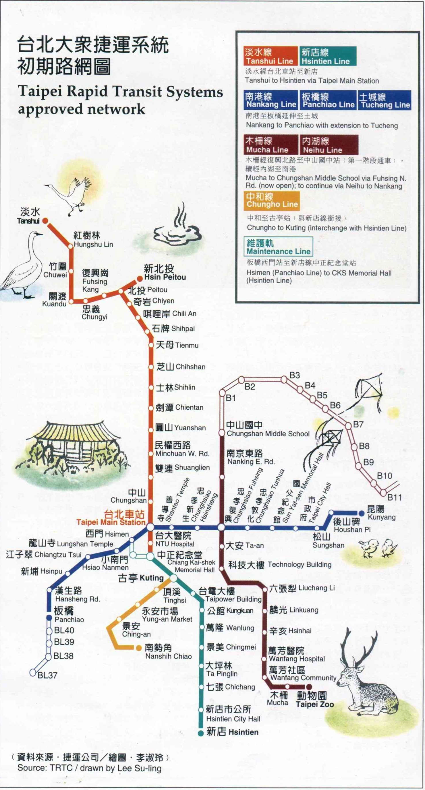台北大眾捷運系統初期路網圖 (資料來源.捷運公司/繪圖.李淑玲)(薛繼光)