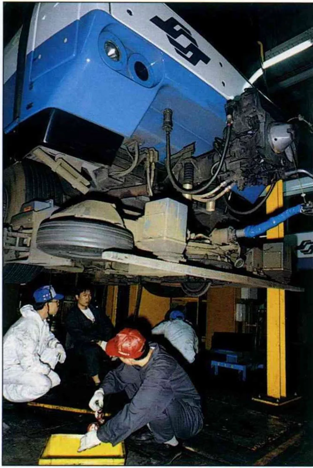 從先進國家買進高科技產品,技術移轉及自主維修是最大問題。木柵線至今還在謀求解決之道。圖為木柵機廠內的電聯車維修廠。(薛繼光)