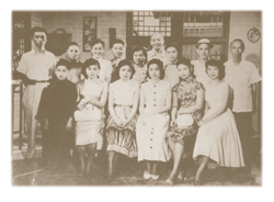 「雨夜花」作詞者李臨秋(後排右一)曾經出資成立影業公司。前排左二為紅極一時的寶島歌后紀露霞。
