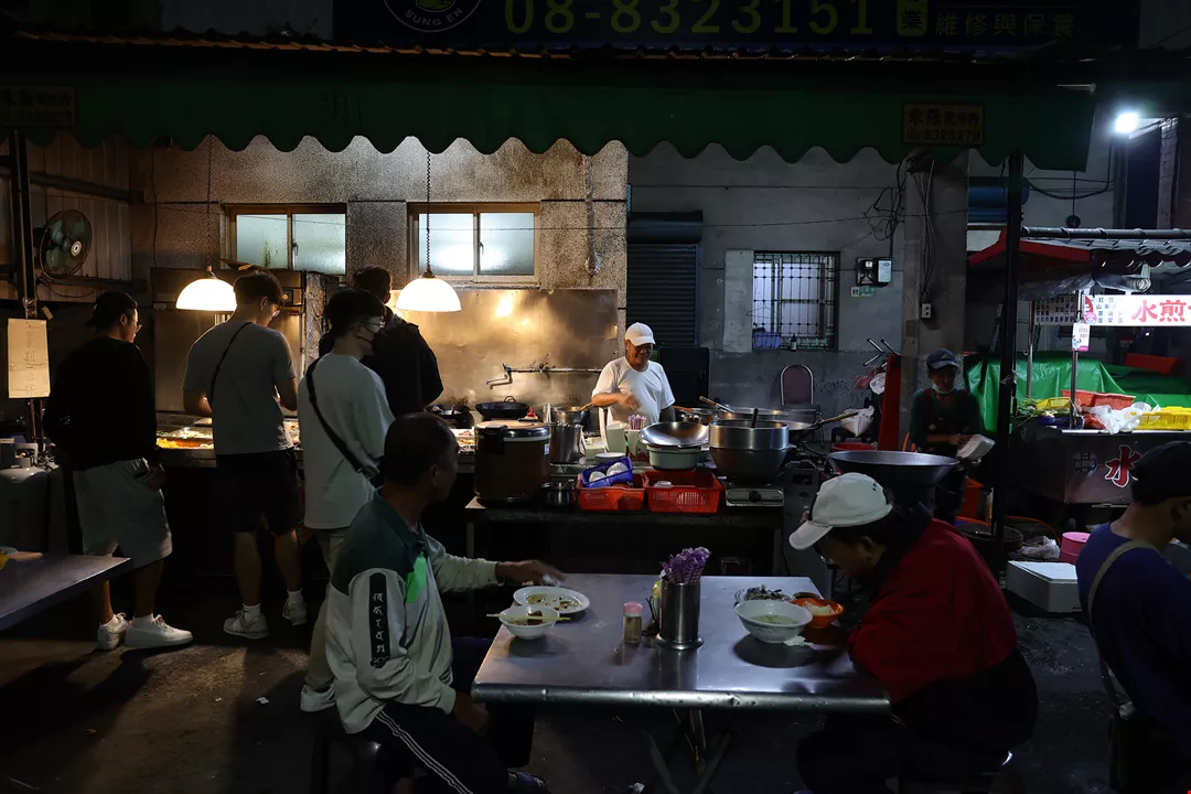 清晨五點的屏東東港碼頭,民眾在小吃攤享用家常菜,開啟一天的活力。