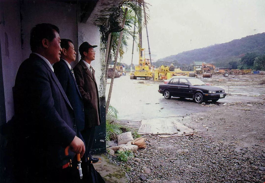 (左)民國八十七年農曆大年初一,例行聚會的幾位侍衛官來到如今已經拆除的七海營舍,想起當年,不禁有滄海桑田之感。