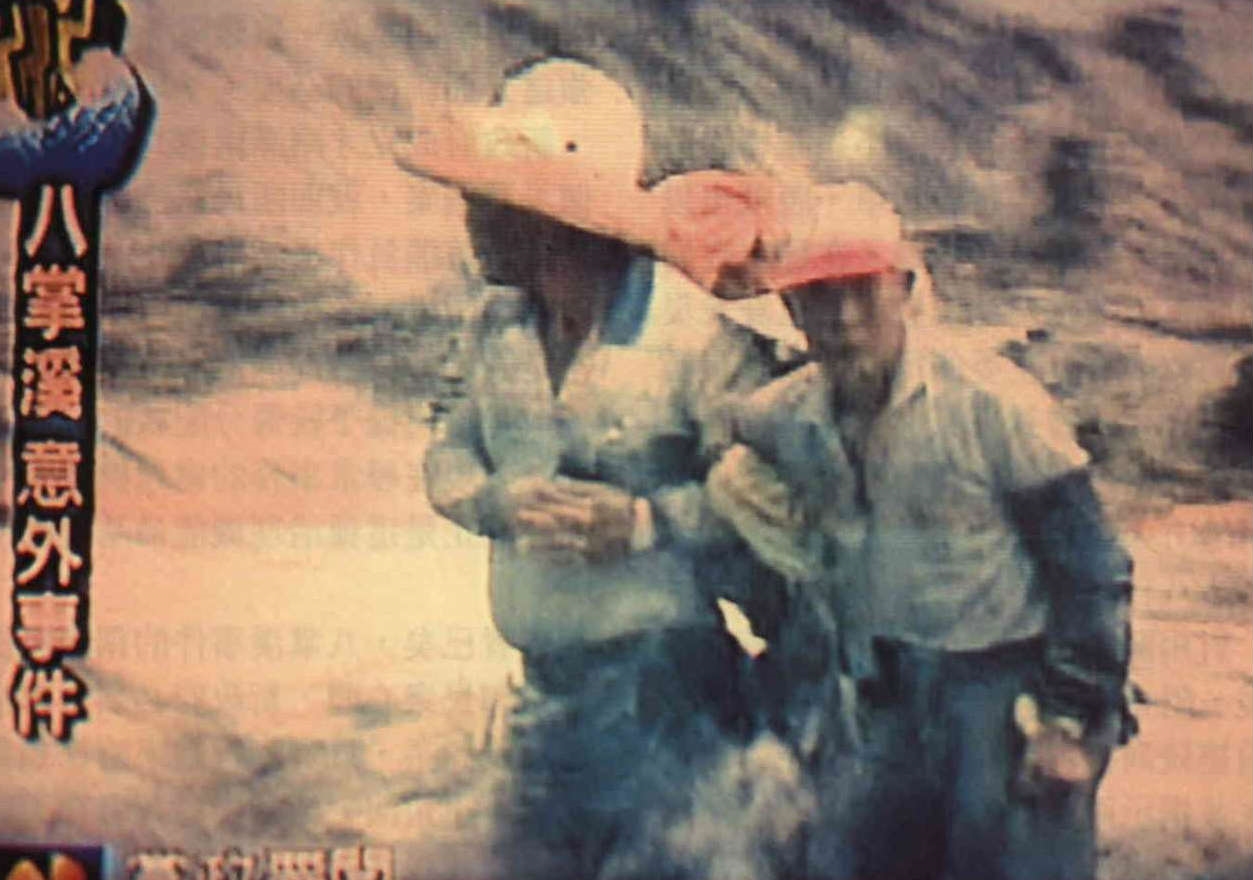 因為救援單位的拖延,四名被困八掌溪三小時的工人遭溪流吞噬。四人無助等待的鏡頭已成這一代人最傷痛的記憶之一。(翻拍自TVBS新聞畫面)