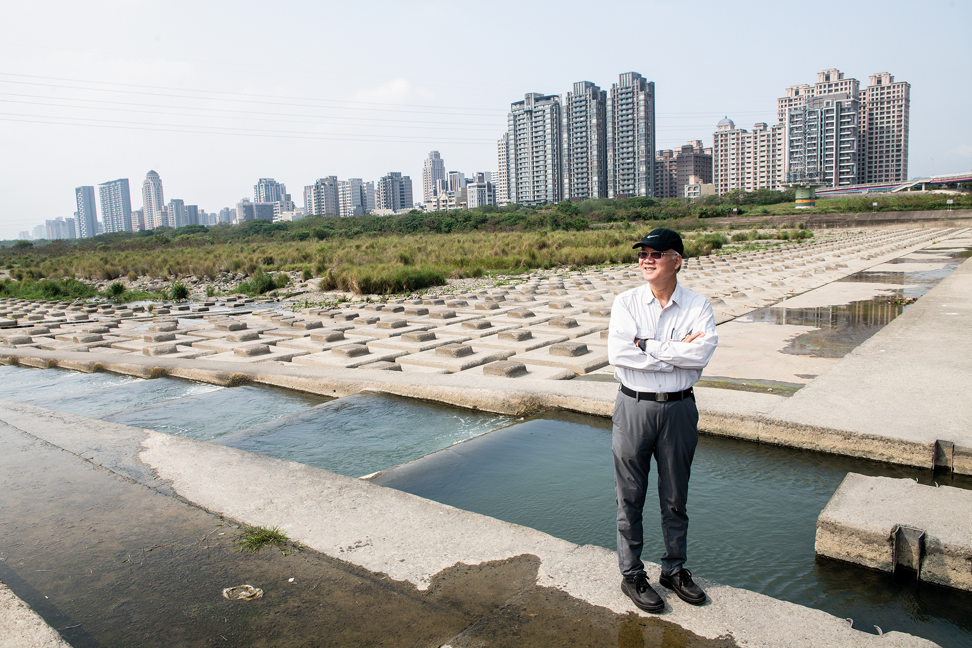 不只是小魚兒,曾晴賢在頭前溪也關注到毛蟹的生態,觀察到毛蟹的作息和運動行為,在設計魚道時,特別在側牆上洗出一排排的溝縫,還增設麻繩,讓毛蟹能攀爬渡過攔水堰。