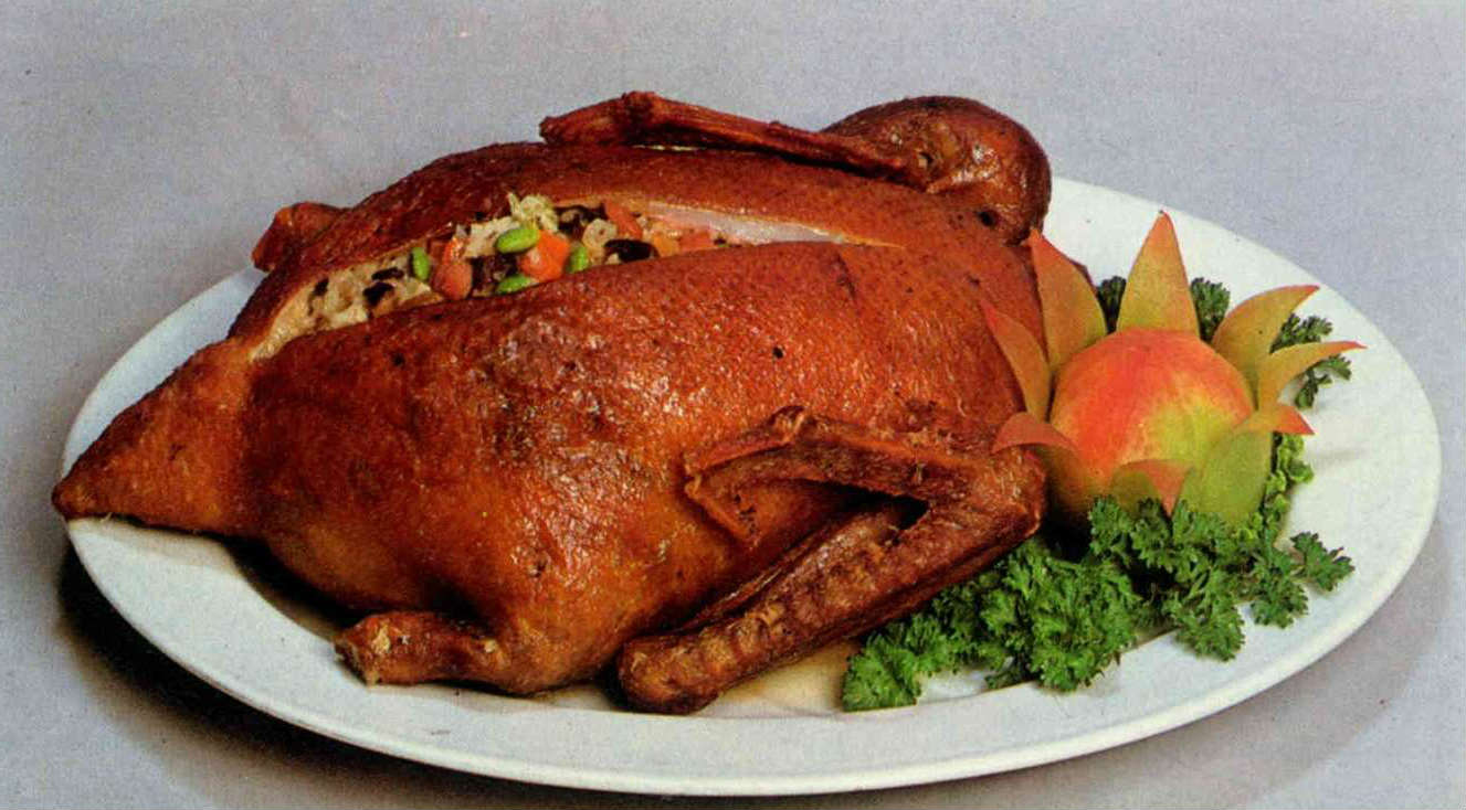 圖5:糯米八寶鴨是將油飯填入鴨肚烹製而成。(鐘永和/漢聲雜誌/漢光公司/味全公司/糧食局)