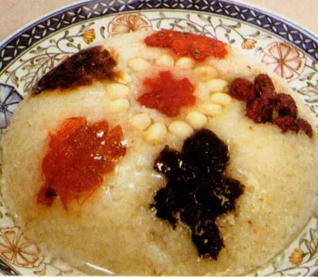 臘月初八的「臘八粥」,北平富貴人家的做法極考究,先挑選糯米、黃米、小米、紅豇豆、去皮棗子等分水煮熟,然後再挑桃仁、杏仁、瓜子、花生、松子、葡萄乾、白糖、紅糖加入同煮,味道不致雜亂。一般人家則將各種作料不分先後一起熬煮。