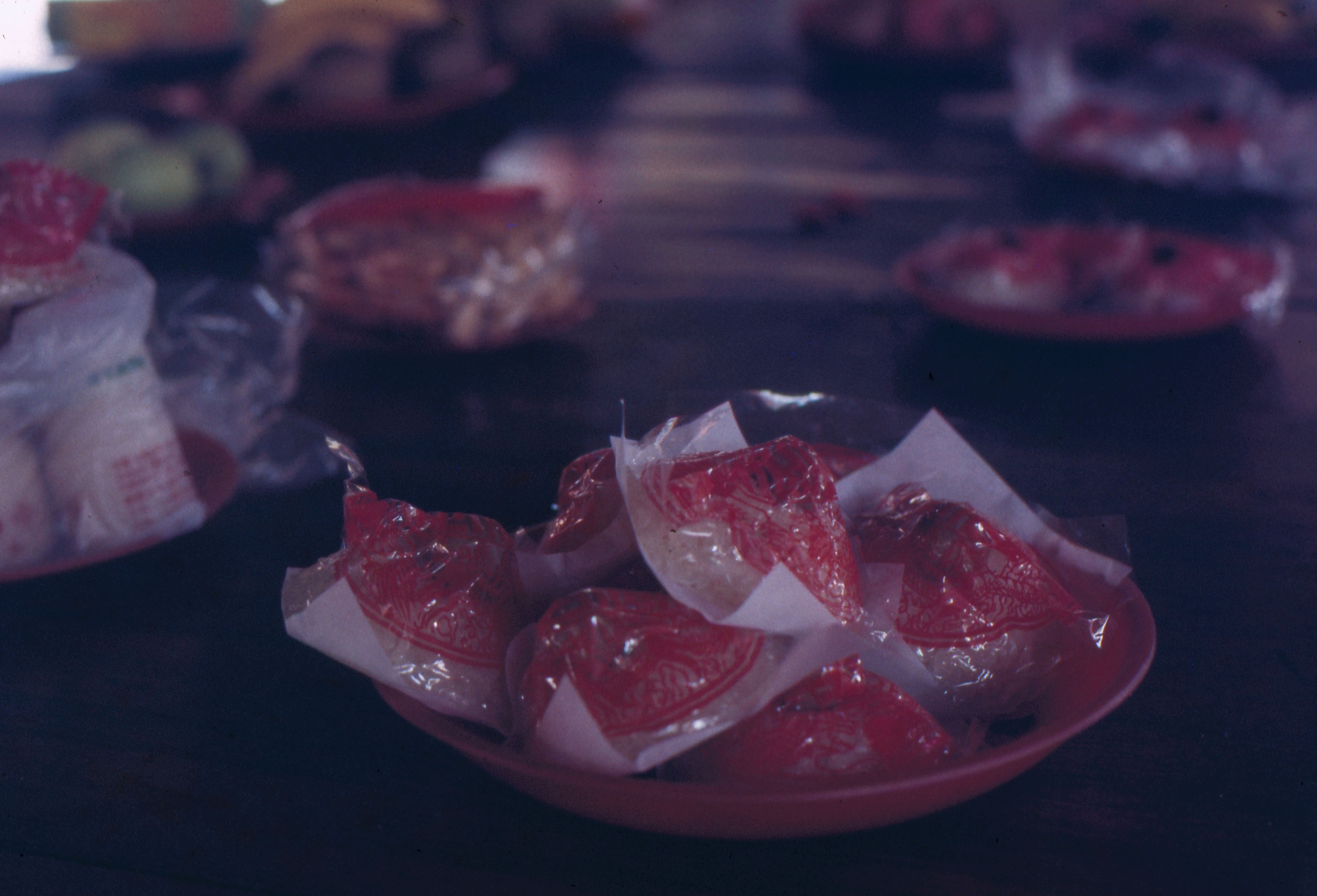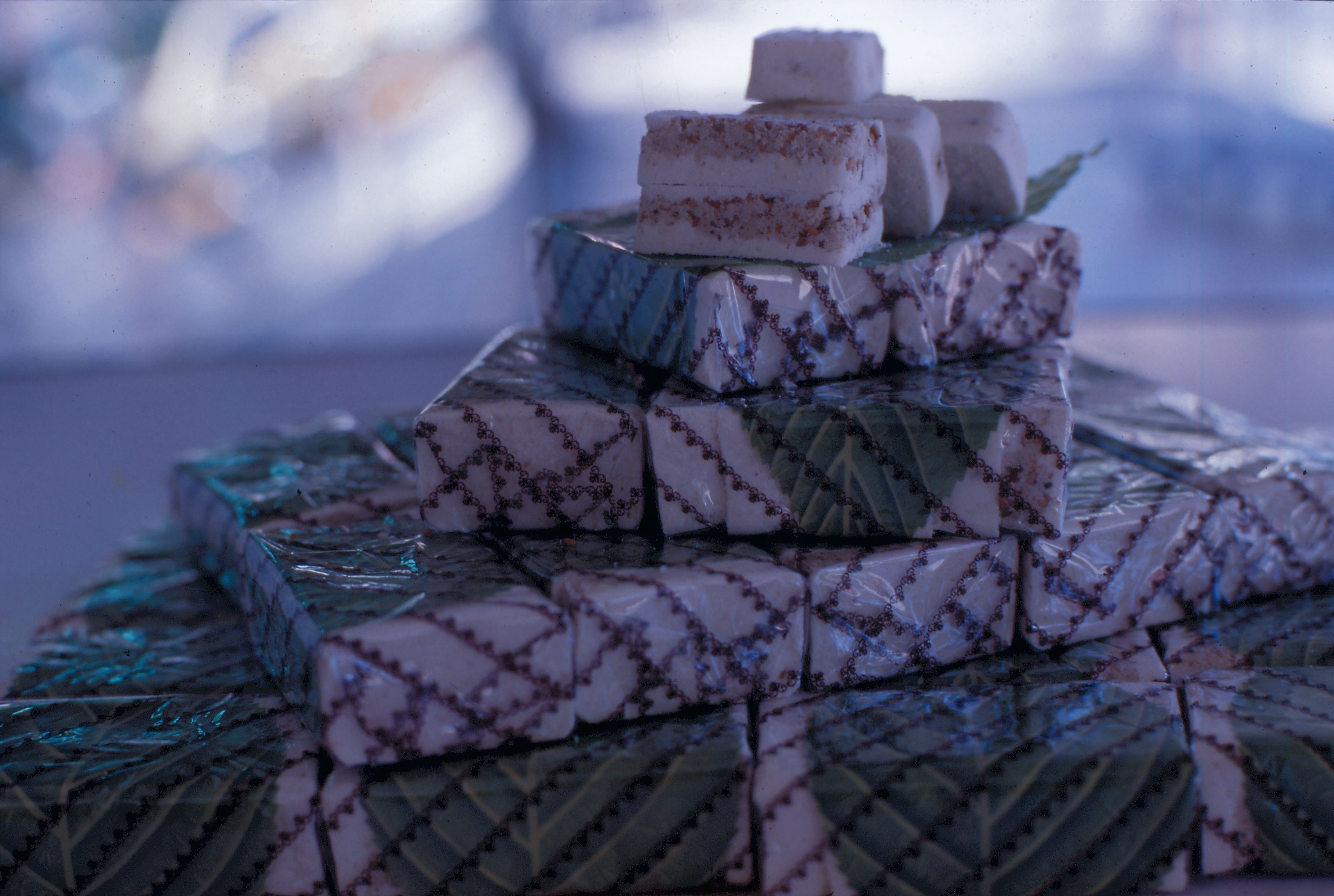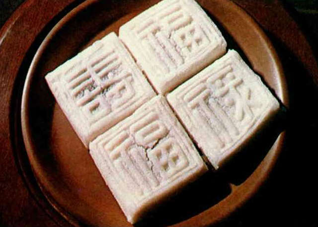 圖3:方糕又名「水晶糕」,雪白的糕面印著吉祥文字。(鐘永和/漢聲雜誌/漢光公司/味全公司/糧食局)
