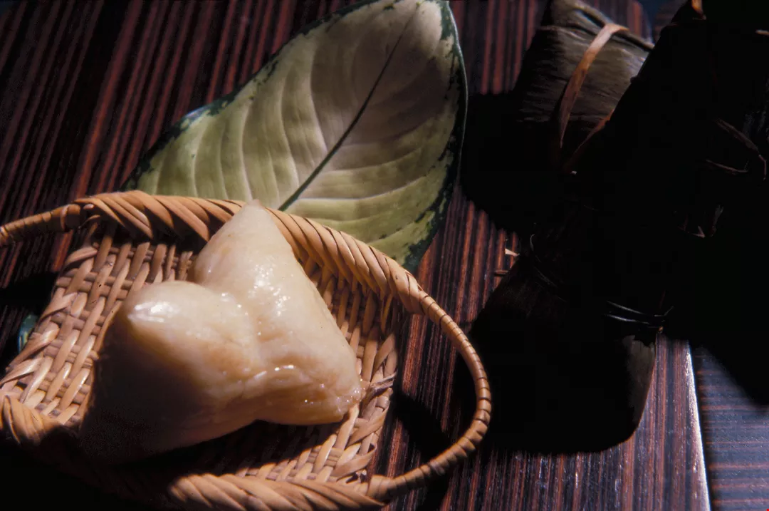 包鹼粽使其清芬可口的秘訣,在選用新摘下的青竹箬包製,做出來的粽子才帶竹葉的清香。冰藏後食用,尤其沁涼可口。