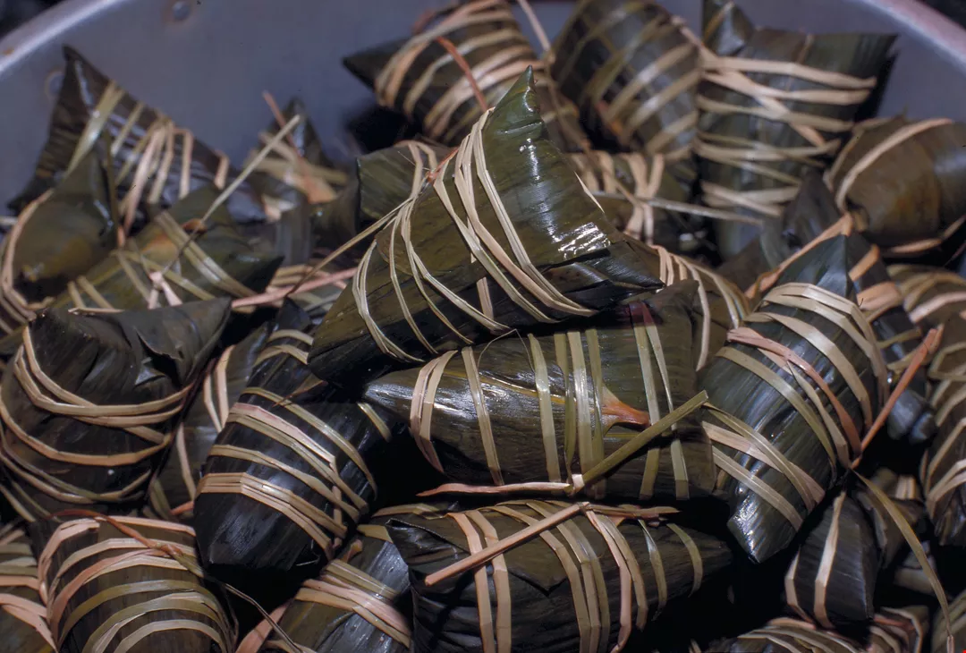 五月五日端午節,賽龍舟、喝雄黃、吃粽子是三大要事。每戶人家都要包上一些味道鮮腴的甜、鹹粽子,這原是為祭祀詩人屈原而做的食物,已成我國普遍的吃食。