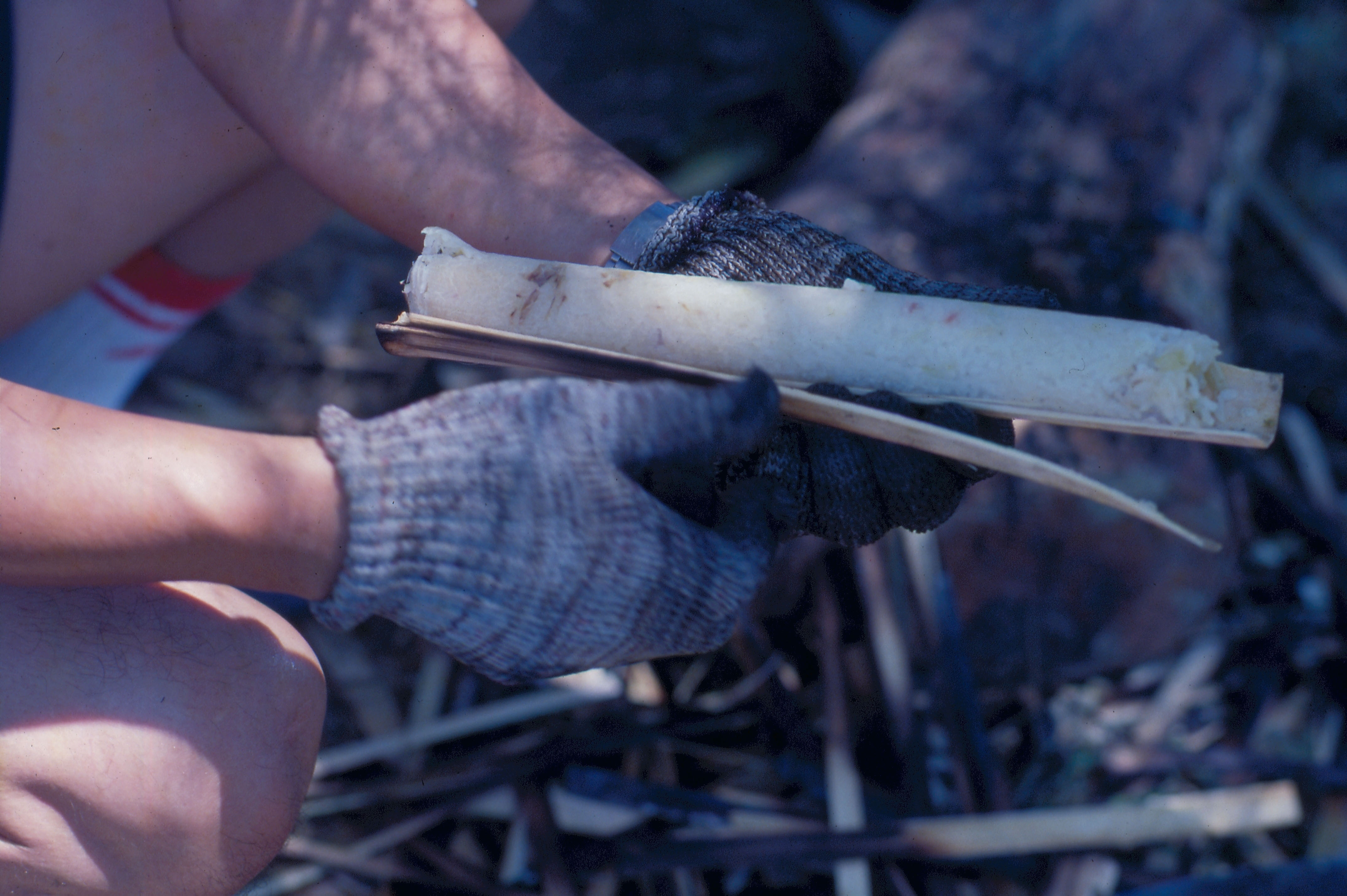 圖1:將糯米、水或加入其他配料,填入桂竹節中封口,用火燒烤,可做出清香美味的竹筒飯。(鐘永和/漢聲雜誌/漢光公司/味全公司/糧食局)