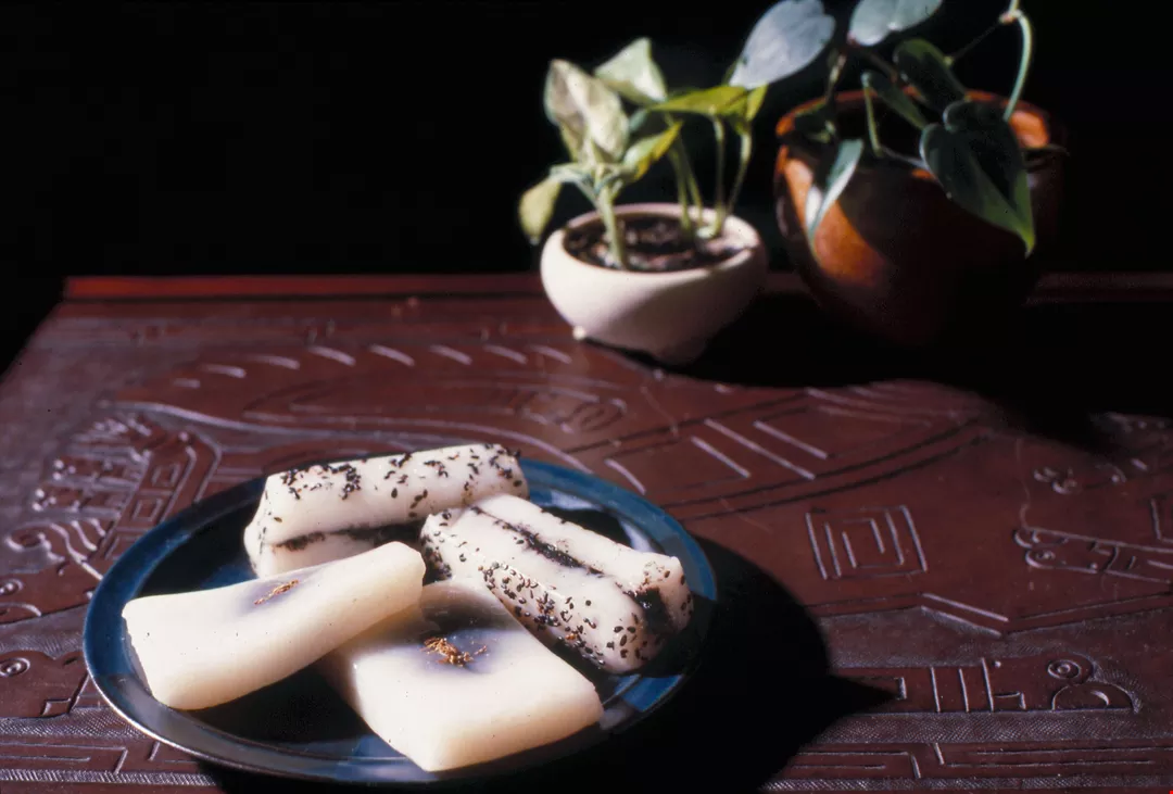 圖4:雪白瑩亮的豆沙糕和芝麻糕,好看又好吃。(鐘永和/漢聲雜誌/漢光公司/味全公司/糧食局)