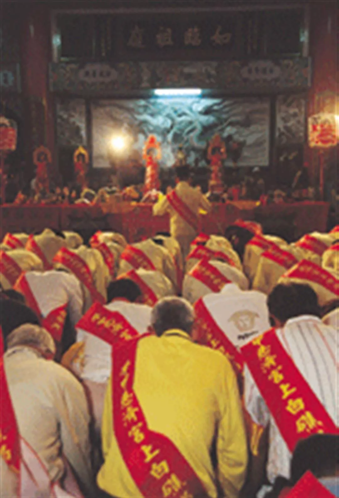 「上白礁」祭典既拜神也拜祖先,三跪九叩,一切行禮如儀,表現出血濃於水,不敢忘本的精神。