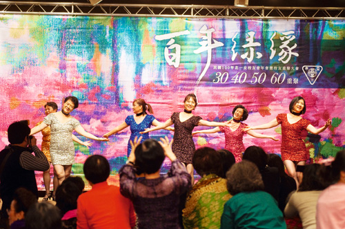 從早上10點報到,下午4點散會,數百位熟女個個臉上發光、情緒始終熱烈高亢:只見這邊有人在相認擁抱、又叫又笑,那邊一桌子人在暢懷敘舊,台上則有不同級別的校友輪番演出──有年齡加總超過千歲的「祖母綠」儀隊,甩起槍來英氣逼人;「辣媽」團身穿性感緊身裙勁歌熱舞,把現場氣氛炒到最高點;閉幕前的壓軸,由民歌手也是本屆校友王海玲帶領的多聲部民歌演唱,暖暖歌聲讓人懷想起共同擁有過的清純記憶。