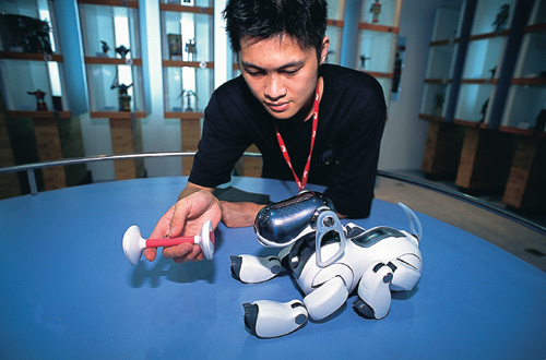 新力公司研發的寵物狗「愛寶五代」,喜歡嬉戲,是人類的好朋友,養得越久,行為能力會越成熟。