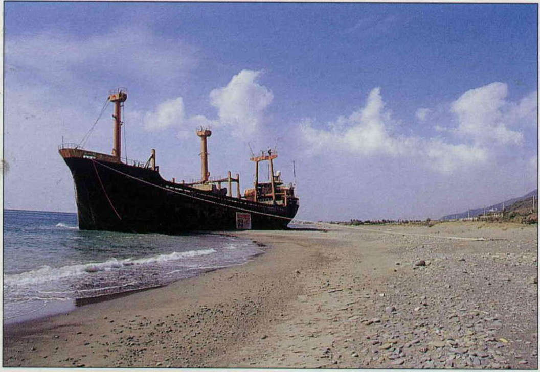 一艘近萬噸的巴拿馬籍貨輪突兀地擱淺在沙灘上,「這是前年八月颱風從台灣海峽上吹來的」,枋山鄉公所一名職員抱怨:「真是麻煩!」拖走的耗費太大,又無法就地拆解,船主更耗著不來解決,成了枋山海岸的「大垃圾」。但遊客可不這麼想,好些人在路旁停車,穿過防風林攜家帶眷到船腹的陰影下野餐,成了公路旁愜意的一景。