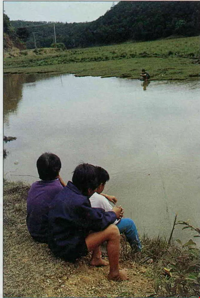 婦人趕著牛群放牧,白鷺鷥繞著輕躍。一群孩子在山溪上游以古老的網罟方式等魚入網,「下午再來看!」帶頭的三年級男孩指揮得有模有樣。