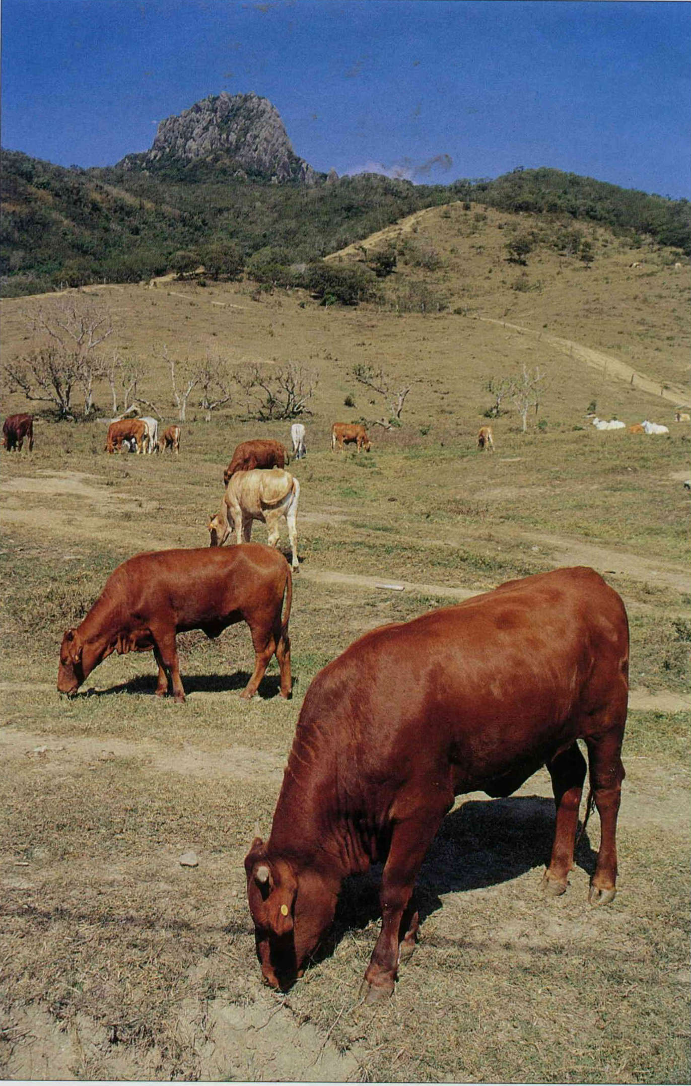 大尖石山是恆春半島的地標,山腳下曾經茂密的灌木林,如今成了牧場。(邱瑞金)