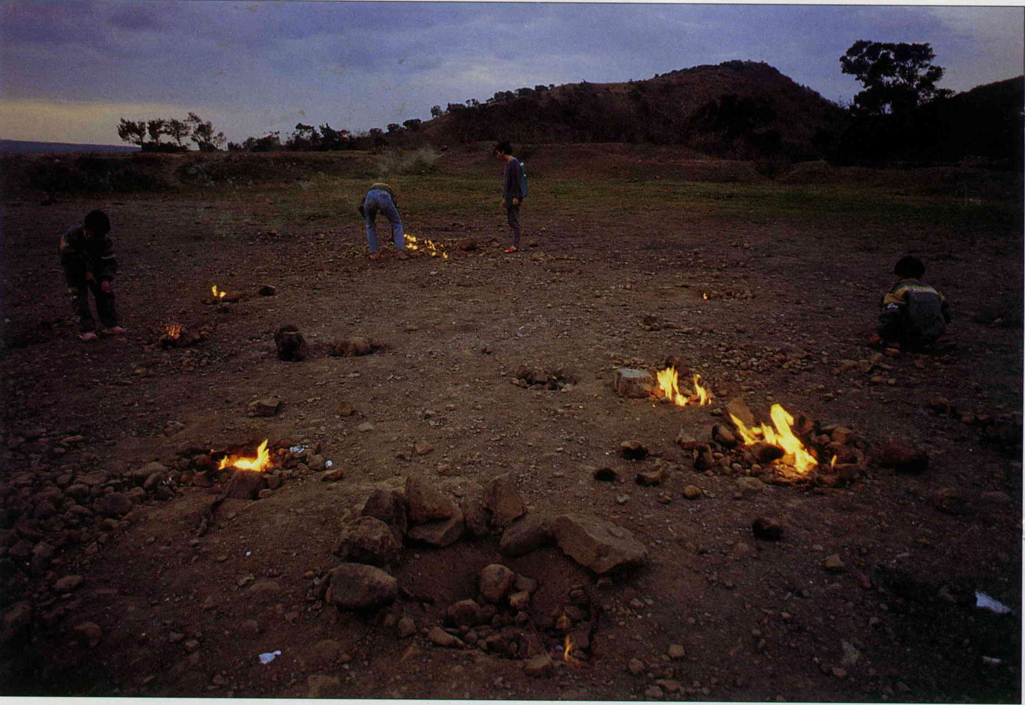 在「出火」荒地上,隨處一挖、點個火,火燄就冒個不停,附近居民不時來此烤蛋、烤蕃薯。(邱瑞金)