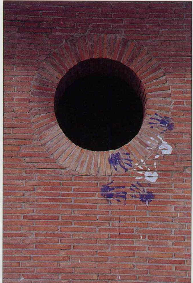 恆春古城門上的手印,讓古蹟維護單位對國內遊客的素質憂心忡忡。(邱瑞金)