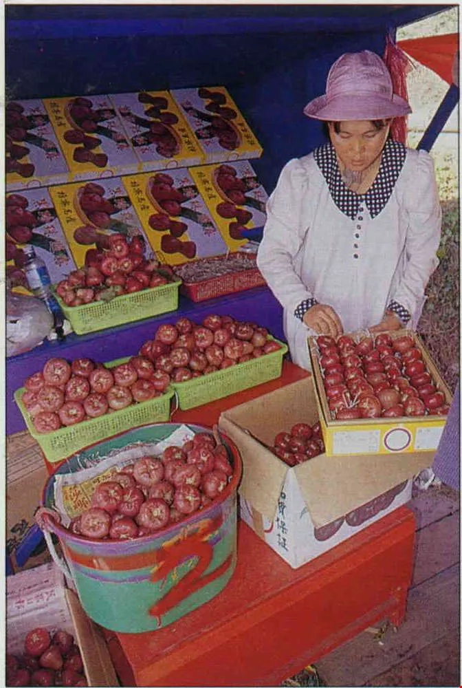 一箱箱鮮紅欲滴的恆春特產「黑珍珠」,令遊人垂涎。(邱瑞金)