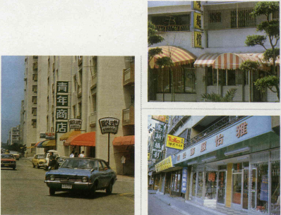說起館子,在民生社區裡也是南北口味都有,麵、飯、大餅、包子、餃子什麼都有供應,甚至咖啡廳、冷飲店、西餐廳也有好幾家,小小巧巧的店面,雅潔、玲瓏的佈置,大眾化的售價,使得每一家的生意都很好。常常還可以看到老闆和顧客們親切的交談(恐怕他們對這些好鄰居的光顧多少得打點折扣),是一副很有人情味的溫馨景象。