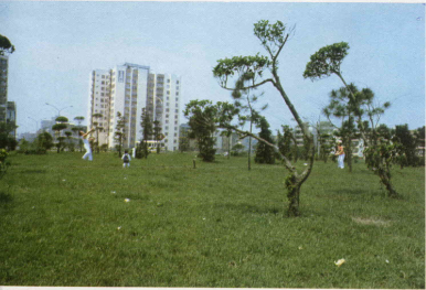 當然,所有的公園、綠地或遊樂場都作了最佳的利用。每天早晨,都可以看到當地居民在公園、綠地或人行道上作運動,他們所作的運動種類可真不少,有的跳繩、有的跑步、有的打羽毛球、有的做健身操、有的舞劍、有的打太極拳。做同類運動的不免各自形成一個個小團體,彼此在一起切磋、研究,除了使身體得到鍛鍊能較強健以外,他們也交換各種生活經驗。這樣天天親密地相處,也就培養了守望相助的「近鄰」之誼。