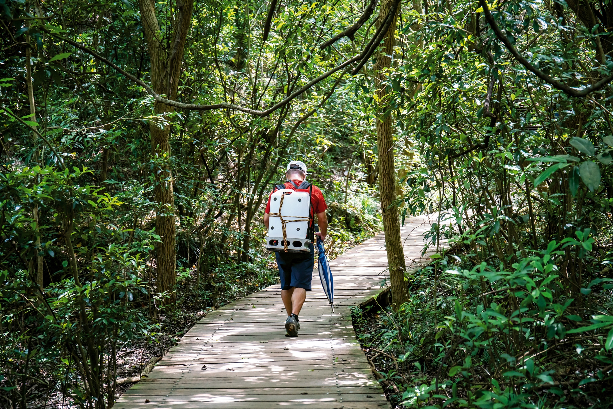 走在北壽山步道上,像是一趟時光之旅,由黃雅婷領路帶我們看見植物與時代的故事。清代就存在壽山的榕樹,是壽山的優勢樹種,當氣生根垂到地上,形成支柱根,尖端會分泌根酸,得以穿入硬又厚的石灰岩。榕樹透過氣生根不斷擴大生長範圍,因此又稱為「會走路的樹」。還有西方博物學家威爾福(Charles Wilford)採集的恆春厚殼樹,主要特徵為開花季的白色小花與厚樹皮,是過去居民生活的柴薪來源。而高聳蔽天,會隨風搖晃發出嘎嘎聲響的是刺竹,也就是打狗地名的來源。過去馬卡道族會將刺竹作為藩籬,防禦海盜入侵。