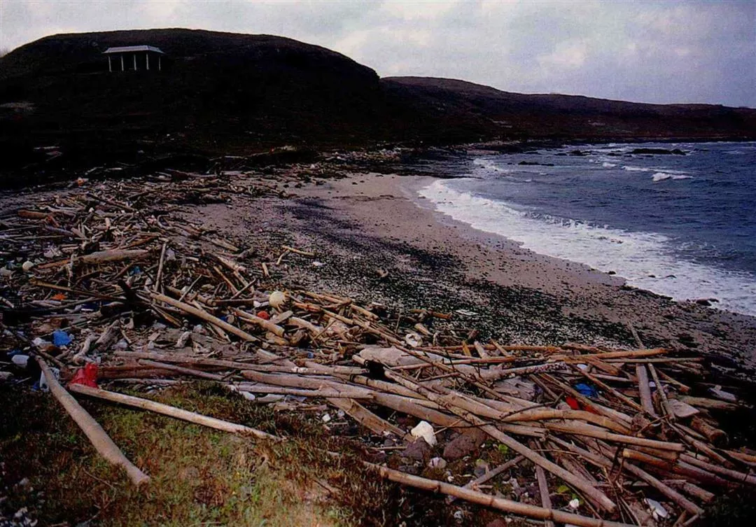 望安島上部分遭廢棄物污染的沙灘,對上岸產卵的綠蠵龜來說,險阻重重。