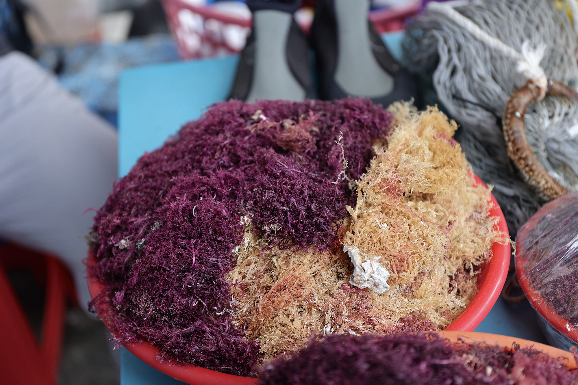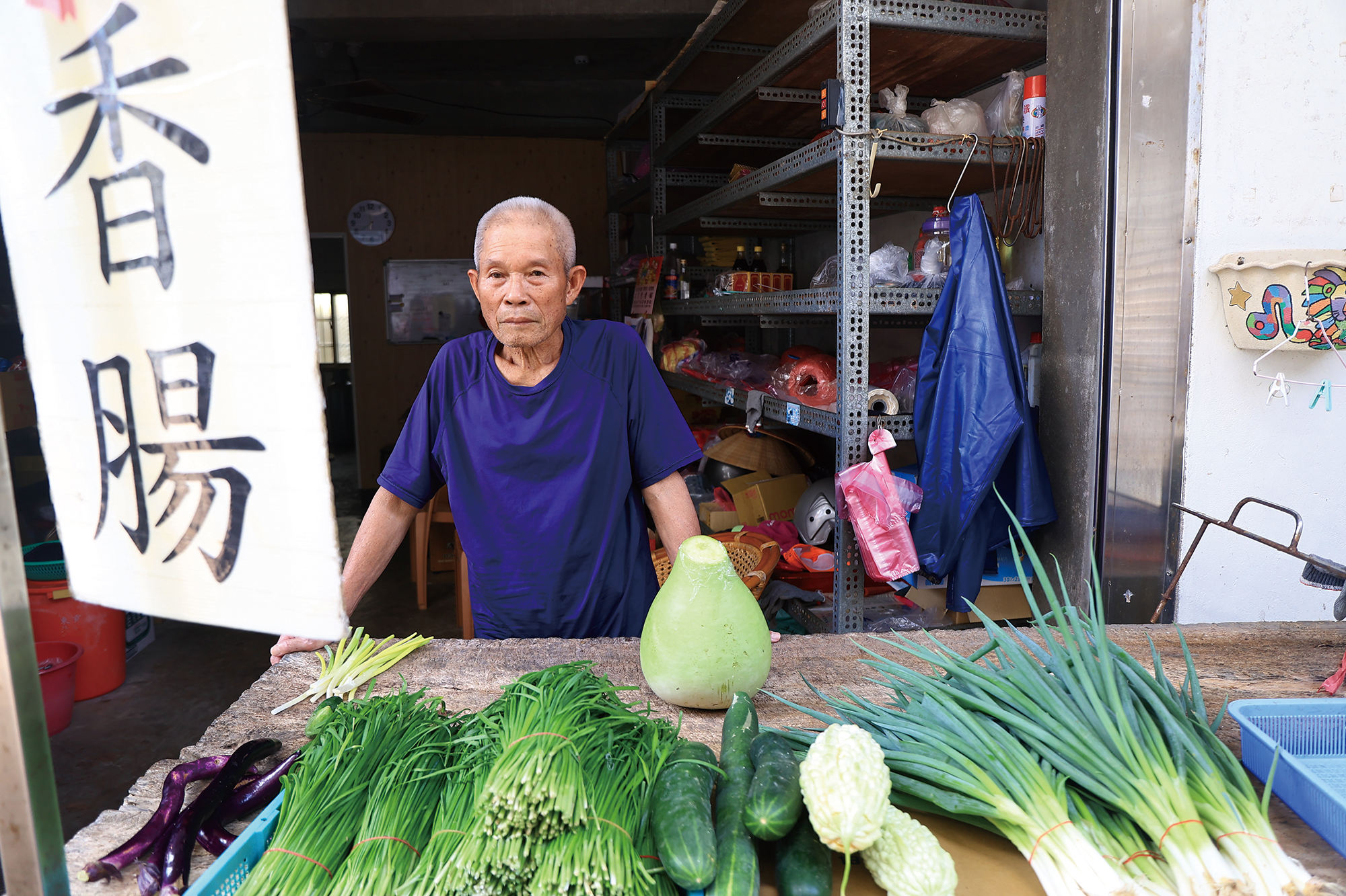 貢寮老街上,居民在家門前擺攤,販售他們自豪的在地鮮蔬。