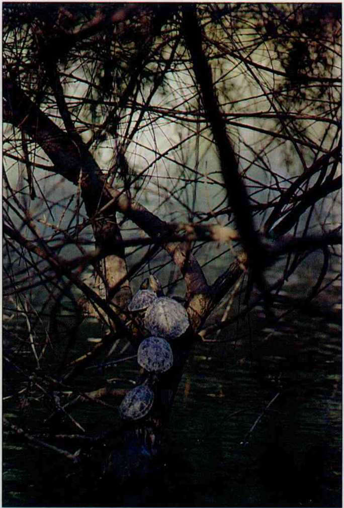 樹庇蔭了萬物,烏龜也離開湖水,到樹上來透氣。(邱瑞金)