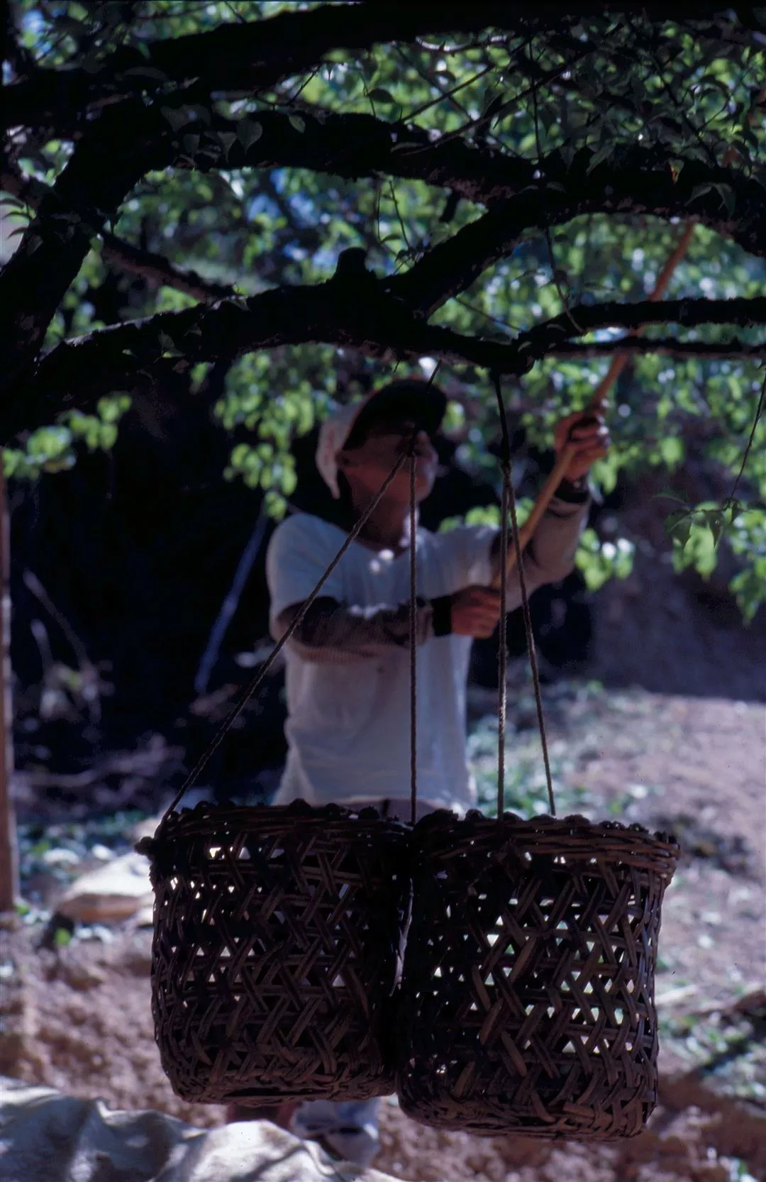 途經信義鄉栽植梅樹的山坡,隨時可見頭戴斗笠、身背竹簍的男男女女穿梭其間。梅林中還不時傳來噼噼啪啪的打梅聲,此起彼落,熱鬧無比。梅樹高度多不超過三公尺,採梅看來不會是苦差事。工人一面採收,一面談天說笑,氣氛十分輕鬆愉快。同來的孩童不甘寂寞,紛紛爬到樹上玩躲迷藏的遊戲;再大一點的孩子則在樹下撿拾「遺珠」,積少成多賣給小店,也能賺得一筆零用錢。小店把梅果曬乾後加糖、鹽、甘草醃漬,製成梅滷作為刨冰配料。