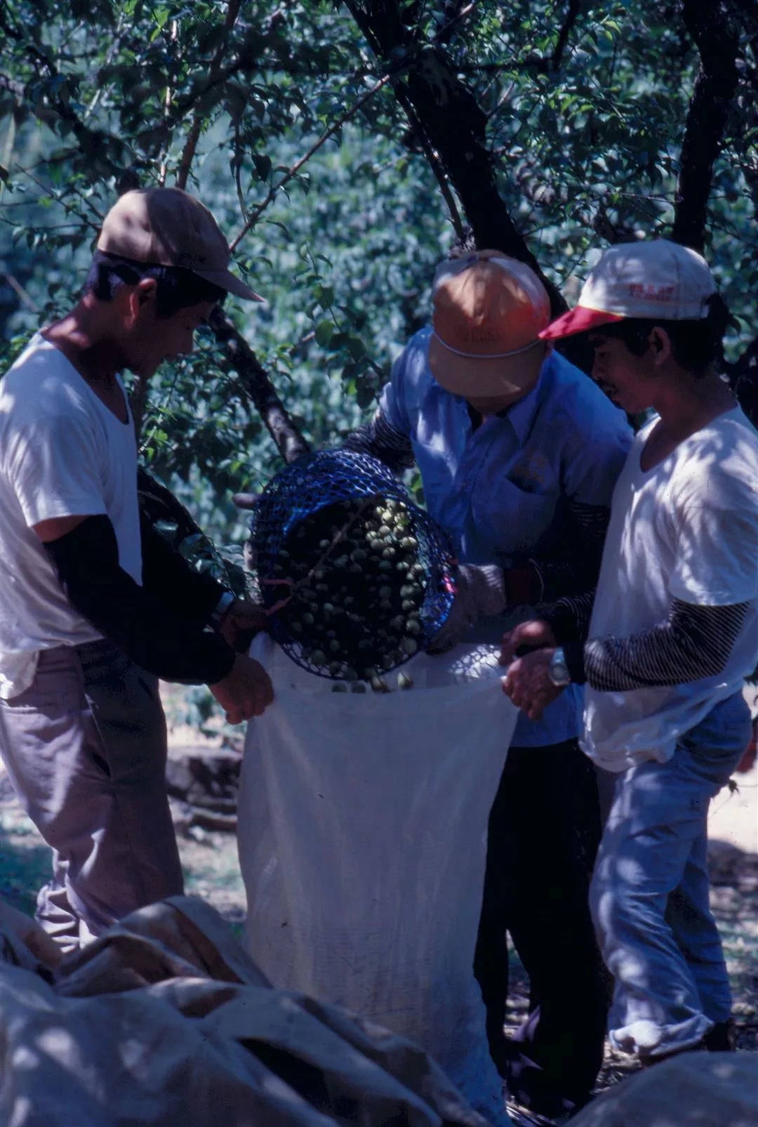 圖3:梅園中,大人忙著採收,小孩則在樹下玩耍或撿拾掉落地上的梅子。(鐘永和)