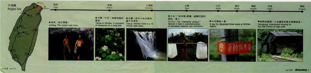 像建於民國八年的平溪線,原為運煤而舖設。如今礦業雖已沒落,但沿線仍有瑞三和十分煤礦,「煤鄉」風味不減,在十分車站旁還可見識煤礦輸運作業過程呢!附近的瑞芳和九份,民國初年及日據時期曾以金礦聞名,淘金客雲集,繁華一時,導演侯孝賢的電影「悲情城市」即在此取景。