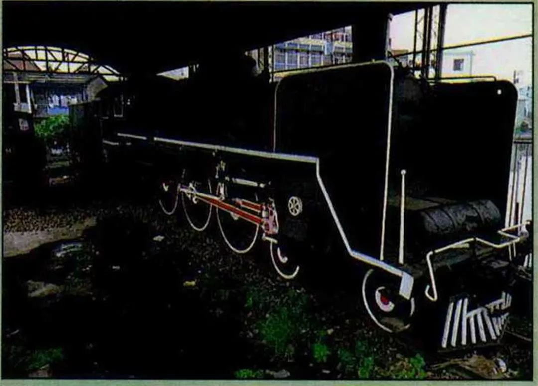 二水車站外:退休的蒸汽火車頭。(張良綱)