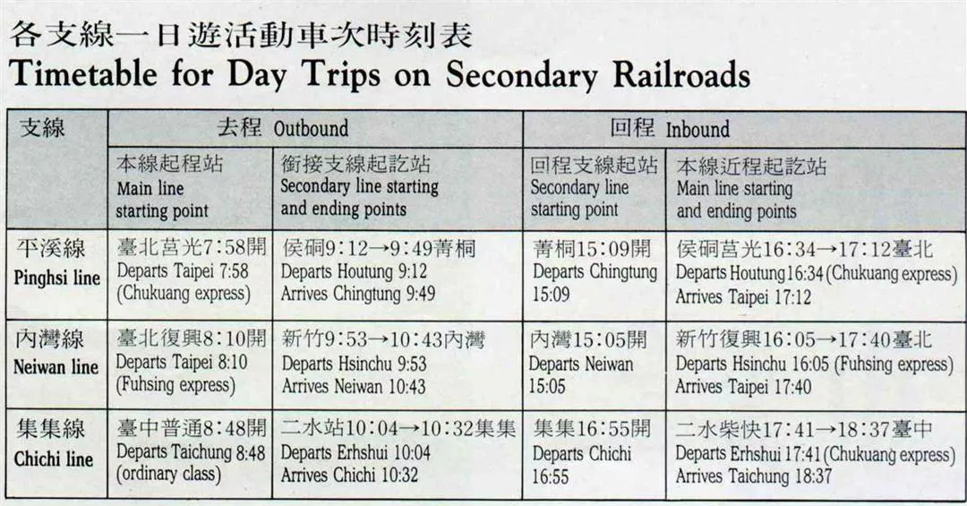 台北縣三貂嶺到菁桐的平溪線、新竹到內灣的內灣線、彰化二水到南投車埕的集集線,正好分別位於北部、桃竹苗和中部,可以一覽這三個地區不同的產業型態、自然景觀和風土人情。