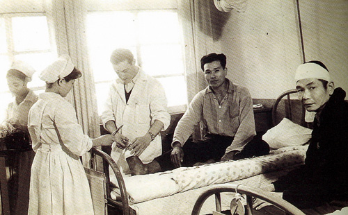 為了紓解醫師荒,陳永興院長(中)遠赴美國請來已經退休的台裔醫生,返鄉服務。