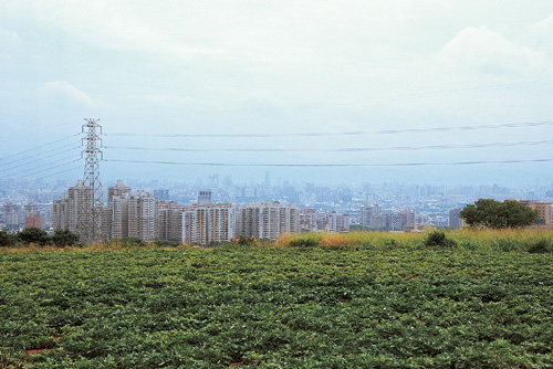 大肚山底下種水稻,山腰有理想國社區,山頂上的紅土則遍植甘薯。圖為從山頂台地遠眺。