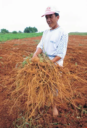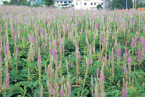 鄉民近來在耐旱的紅土台地上種植大片的狗尾草,是龍井鄉的新興特產。