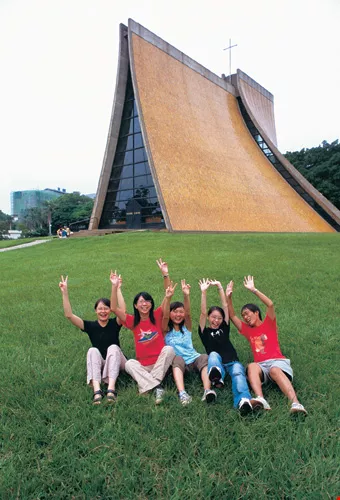 僅一縣之隔,龍井鄉內各行各業的商家,幾乎都仰賴隸屬台中市的東海大學學生維生。圖中背景為名建築師貝聿銘作品《東海教堂》