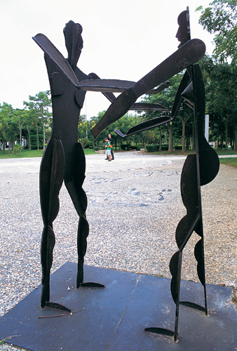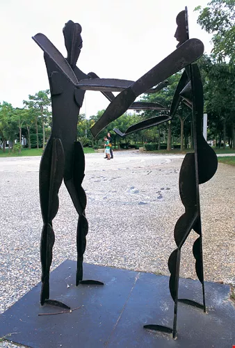除耐旱作物和碉堡外,大肚山上還規劃了佔地廣袤台中都會公園,是中部民眾賞夜景的好去處。圖為公園雕塑一景。