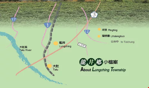 龍井鄉位在台中縣、市交界,順著中港路往台中港方向前進,橫越整個台中市來到大肚山腳下、東海大學斜對面的幾株鳳凰木叢聚處,便是龍井鄉了。