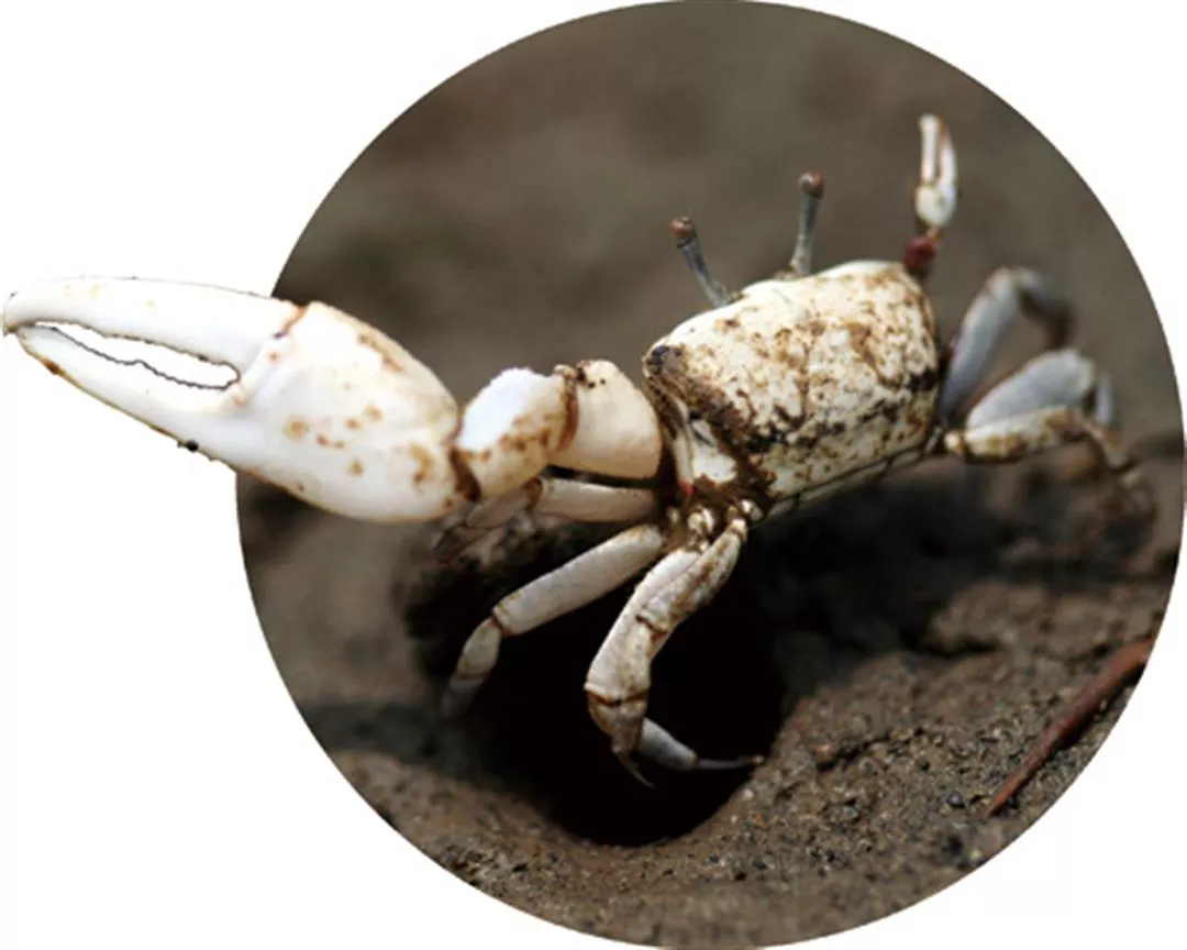 五股溼地可以很容易觀察螃蟹在灘地上覓食、追逐、求偶的千姿百態,是小朋友的最愛;睜著鼓凸大眼眼觀四面的彈塗魚,則有著強烈的領域性。
