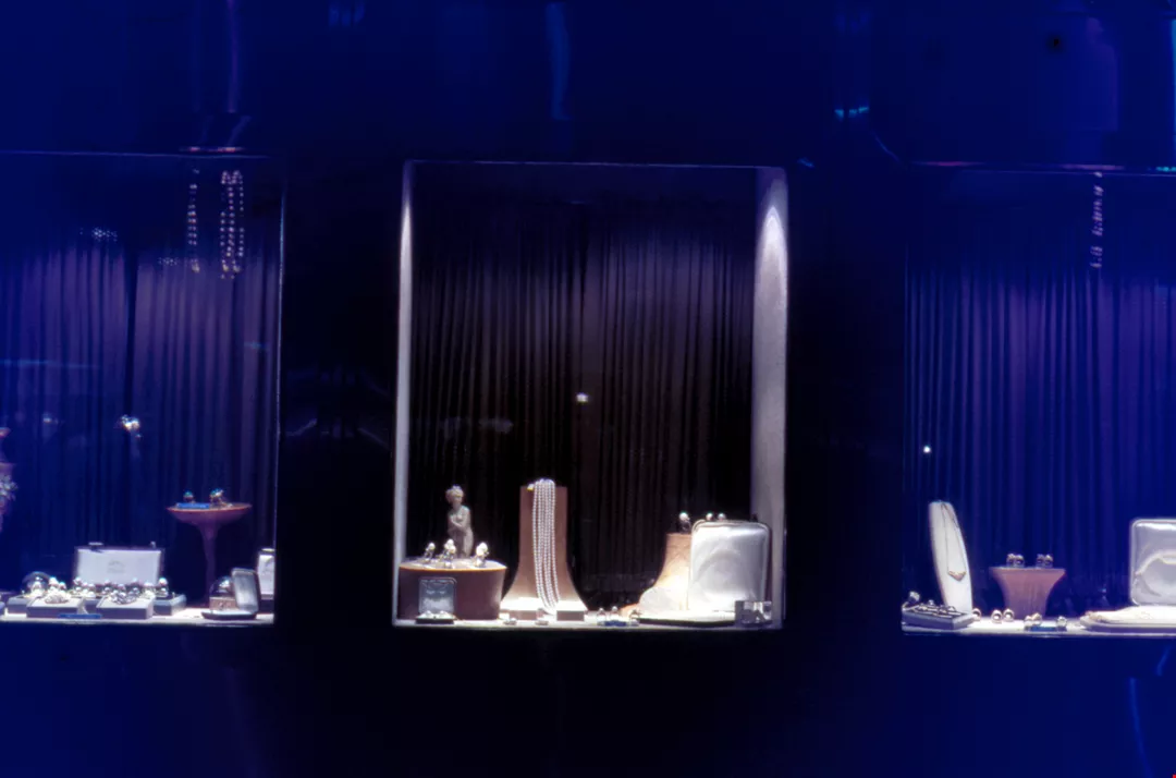 圖7:櫥窗中深色的背景,將珠寶烘托得更加高貴凝重。(鐘永和/楊永山)