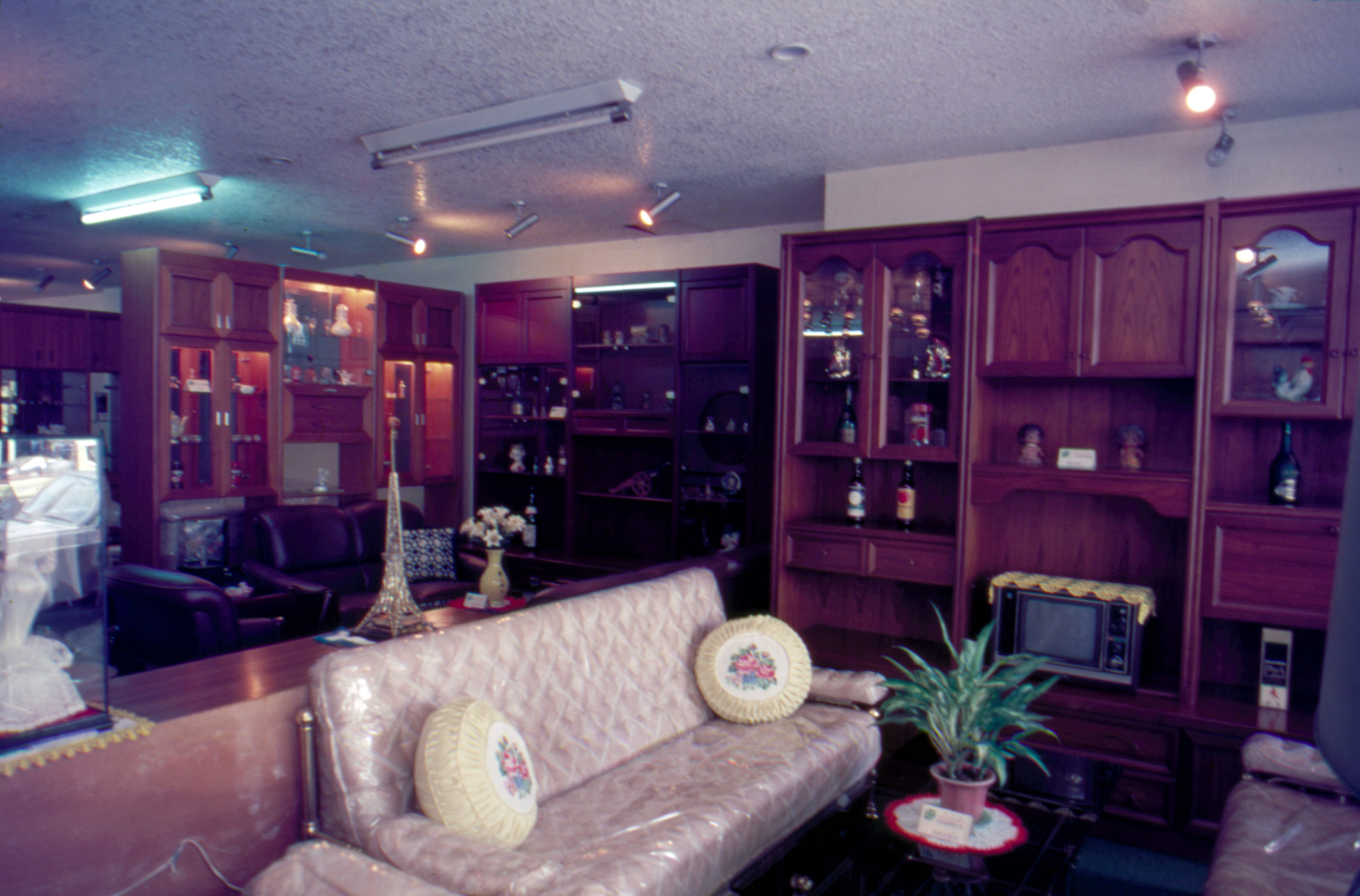 老店不太重視搭配,通常最堶授\床、進門處是沙發,靠牆二邊為梳妝臺,其餘的書桌、書架、小椅、小凳的,則堆放在門口。