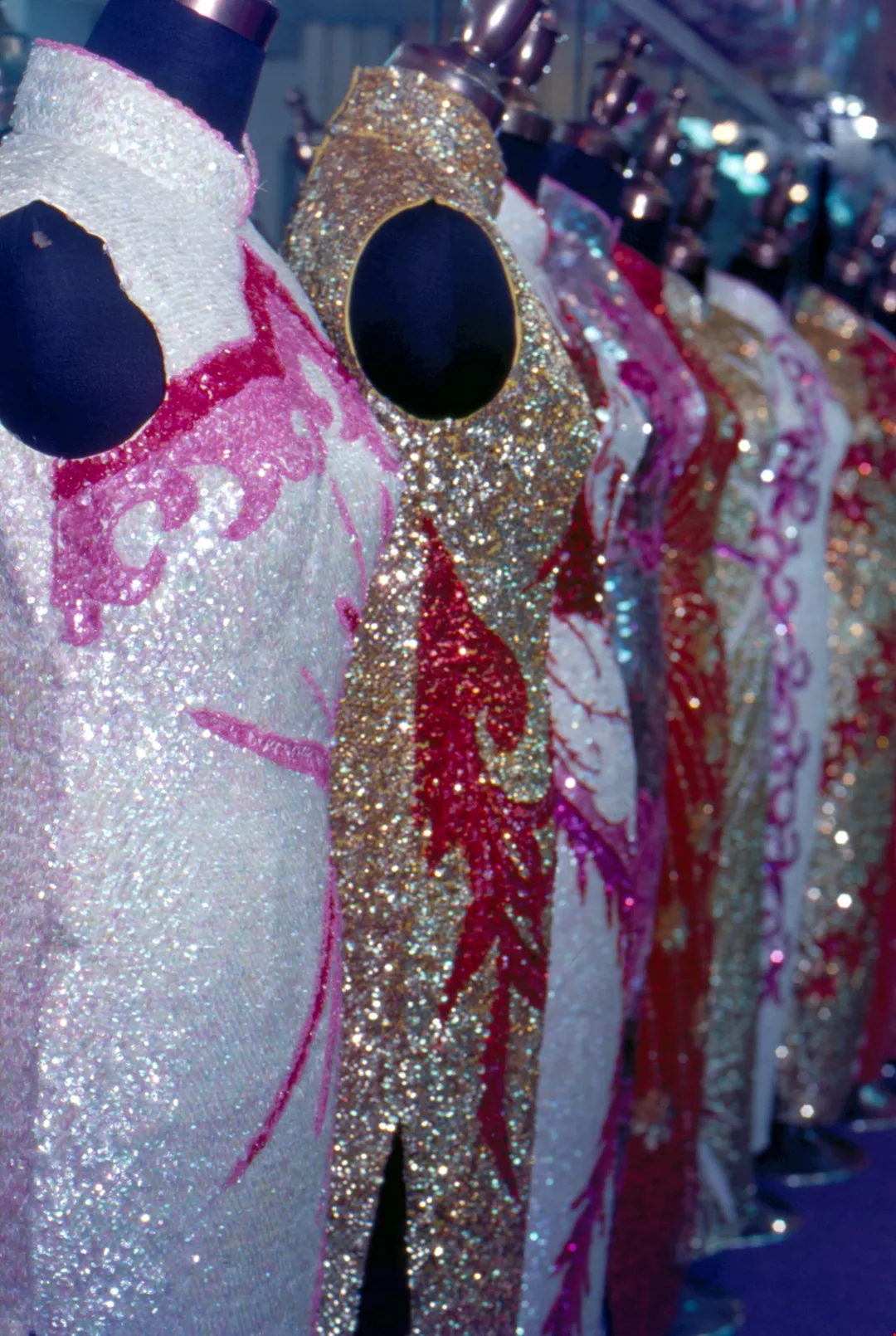 圖6:攝影禮服店中出租各式綴滿亮片的旗袍,可使新娘們在晚宴上豔光四射。